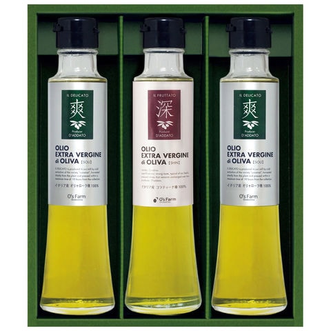 | 内容 | 深(コラティーナ種100%)×1、爽(オリャローラ種100%)×2、各182g/原産国:イタリア製 |