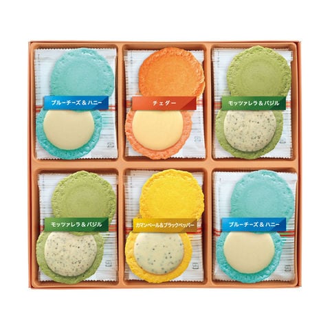 | 内容 | えびチーズサンド(チェダー・カマンベール&ブラックペッパー×各7、モッツァレラ&バジル・ブルーチーズ&ハニー×各14)/原産国:日本製 |