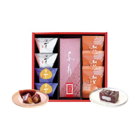 丁寧に炊きあげた大粒の小豆と羽二重餅との絶妙な調和が特徴の代表銘菓「あも」をはじめ、季節の素材を使った創作和菓子を詰め合わせました。幅広い世代の方に喜んでいただけるギフトです。