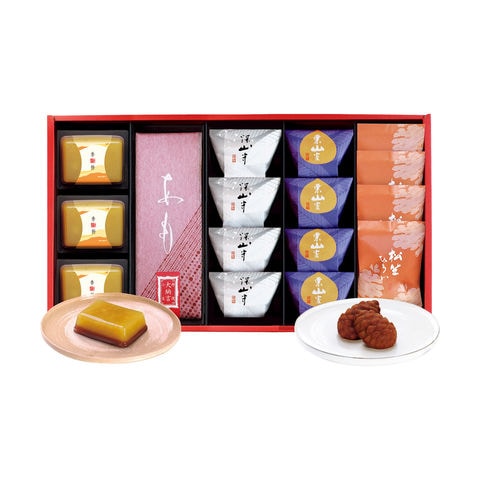 丁寧に炊きあげた大粒の小豆と羽二重餅との絶妙な調和が特徴の代表銘菓「あも」をはじめ、季節の素材を使った創作和菓子を詰め合わせました。幅広い世代の方に喜んでいただけるギフトです。