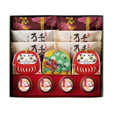 | 内容 | 干支菓(午)・千客万来×各4、さつまいも・おきあがりこぼし×各2、獅子舞×1/原産国:日本等 |