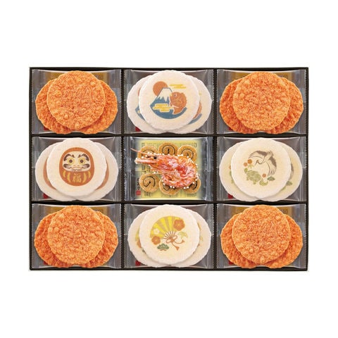 | 内容 | 赤えび炙り焼き×12袋、富士と鯛・だるま・鶴と亀・松竹梅×各3袋、甘えび浜焼き×2袋/原産国:日本 |