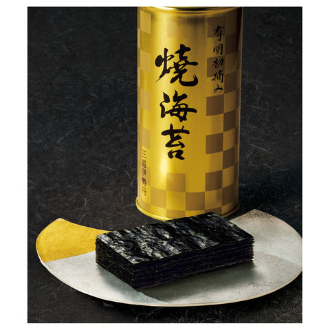 海苔の名産地として知られる有明海。極寒期に摘採された初摘みの中から、より優れた味と色つやを持つ海苔だけを使用しました。豊かな自然が育んだ海苔の旨みを最大限に引き出すため、熟練の職人がその日の気温や湿度を見極めて焼き加減を調整し、一枚一枚丁寧に焼きあげています。美しい光沢、ふわりとした食感、とろけるような口どけと風味豊かな味わいをお楽しみください。上質感のある金色のパッケージでお届けします。