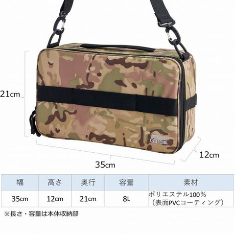 本体収納部幅35cm 本体収納部高さ12cm 本体収納部奥行き21cm 本体収納部容量8L 素材ポリエステル100%(表面PVCコーティング)