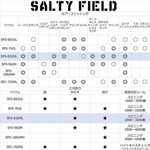 SFS-832MLは8フィート3インチ(252 cm)のスピニングロッド。