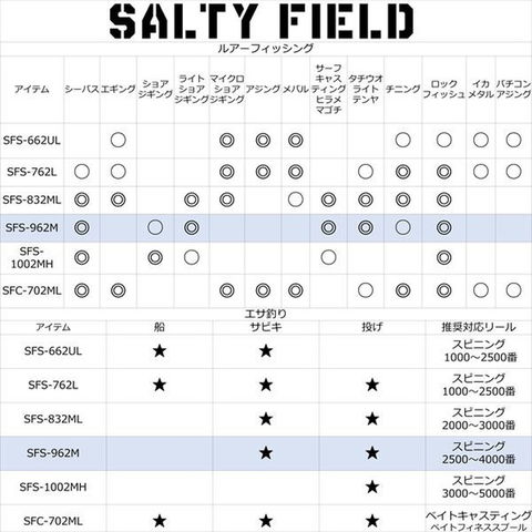 SFS-962Mは9フィート6インチ(290 cm)のスピニングロッド。