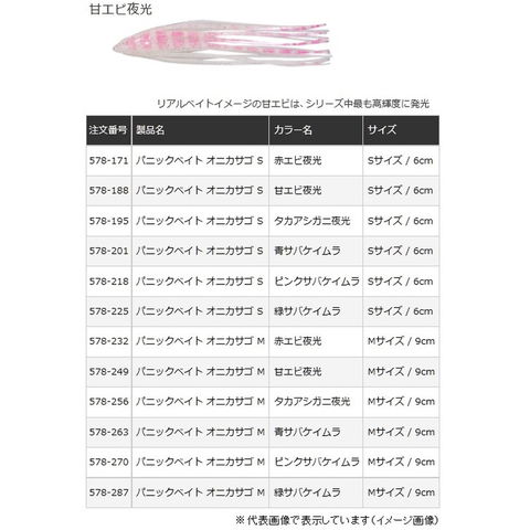 Mサイズ 甘エビ夜光 ★ 深場釣り師御用達!オニカサゴに特化した専用カラーを盛り込んだパニックベイト!大型狙いにMサイズ!!※掲載している商品の画像は代表画像を表示しています。また実物と色が違って見える場合があります。あらかじめご了承下さい。