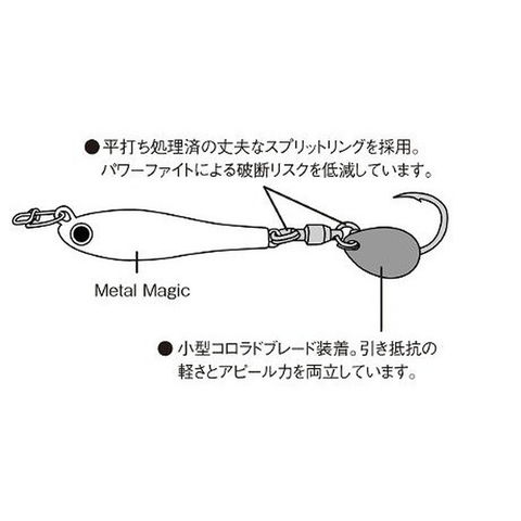 メタルマジックシリーズ純正スペアパーツ。ステンレス製高強度ベアリングスイベルと、太軸スプリットリングの組み合わせにより抜群の耐久性を発揮。メタルマジックのスペアフックとしてはもちろん、チューンアップパーツとしてもご利用いただけます。タイプ:シングル ブレードサイズ:#2 カラー:S