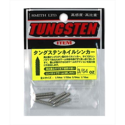 ウエイト:3/64oz タングステンネイルシンカー ※掲載している商品の画像は代表画像を表示しています。また実物と色が違って見える場合があります。あらかじめご了承下さい。