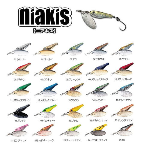 WEIGHT 9g SIZE 60mm BODY LENGTH 32mm HOOK がまかつシングル53 #2 近年、金属系トラウトルアーの主流になりつつある小型サイズスプ-ンではなく、あえて「スピナー」を提案させていただいた理由は、 「スピナーは良く釣れて好きなんだけど、糸ヨレがね・・・」 「簡単なボディーの作りが物足りない・・・」などのアングラーの声をよく耳にし、「いいなぁ~と思う物があまり出てこないよねぇ」と言うアングラーに答えるためです。スピナーの弱点と市販されている物にないフォルム。そして使い勝手の良さを考え、スミスオリジナルとしてカタチにしたもの。それがフィッシュボディースピナー「ニアキス」です。 ※掲載している商品の画像は代表画像を表示しています。また実物と色が違って見える場合があります。あらかじめご了承下さい。