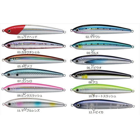 LENGTH 130mm WEIGHT 33g TYPE スローシンキング HOOK カルティバST-56 #2 サーディンランは、水面・水中で逃げ惑うイワシの動きを再現させたソルトウォーター・ペンシルベイトです。 タイプはフローティングの「13F」、スローシンキングの「13SS」。状況やターゲットに幅広く対応させていくことが可能。河口域のシーバスから磯のヒラスズキ、青物、回遊魚までターゲットに捉えます。 水平姿勢を維持したスローシンキングモデル。荒天時や波高が高い時やサラシの下を通すなどに最適です。また、フローティングを使用後にフォローとしての利用も効果絶大です。 お勧めの使用方法はジャークで、ストロークやスピードに変化を付けて頂くことで、ウォブリングやスライドに変化が出ます。 水面を割らない抜群の水絡みの良さと、程よい引き抵抗はドリフトにも最適です。 ※掲載している商品の画像は代表画像を表示しています。また実物と色が違って見える場合があります。あらかじめご了承下さい。
