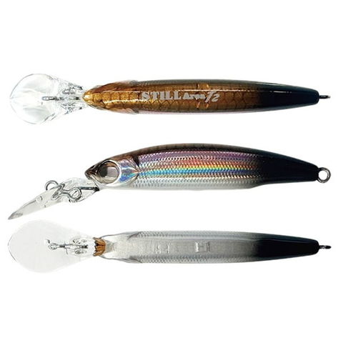 通称「マジックジャーク」キャスト後、トラウトの目線より下に素早く潜らせてルアーの存在を消す。続いてラインテンションをかけて姿勢をコントロールしながら真上に浮かせる。再び視界に飛び込んでくるスティルに魚はたまらず口を使います。サイトフィッシングが出来ないマッディポンドではトラウトのレンジを探るためにPEラインを用い、PEラインの動きでバイトを感知する。また、魚へプレッシャーを掛けづらく、水馴染みが良く伸びの少ないエステルラインもこの釣りでは有効です。