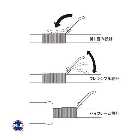 Fujiカスタムオーダーのステンレス製フックキーパーです。折り畳み式のシリーズはハイフレーム&フレキシブル設計で便利かつ邪魔になりません。ガイドと同じようにスレッドで巻いて固定して下さい。※Fujiカスタムオーダーとはジャストエースが特注で富士工業㈱社で生産していただいている商品です。 ★ サイズ(mm):7.6×5.3×9.0(詳細サイズは画像をご確認ください)