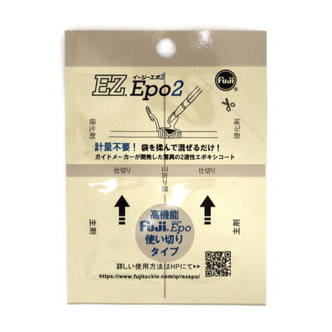 EZエポのパッケージがリニューアルされ販売開始!使いやすさと性能にこだわった2液性エポキシコート「EZエポ」のパッケージがリニューアル。おなじみの「EZエポ」がパッケージを新しくして新発売。面倒な軽量は一切不要!袋を折って揉むだけで、最適比率に配合できるイージーさはそのまま!使い方はイージーだが、そのクオリティはプロのロッドビルダーも唸るほど!・世界初、袋を揉んで混ぜるだけの使い切りタイプの2液性エポキシコート。・低粘度で塗りやすいから、ガイドラッピングが簡単に。・筆塗り時間は長く、硬化時間は短い。コーティングしやすい硬化特性。サイズ:内容量6g(主剤4g/硬化剤2g)
