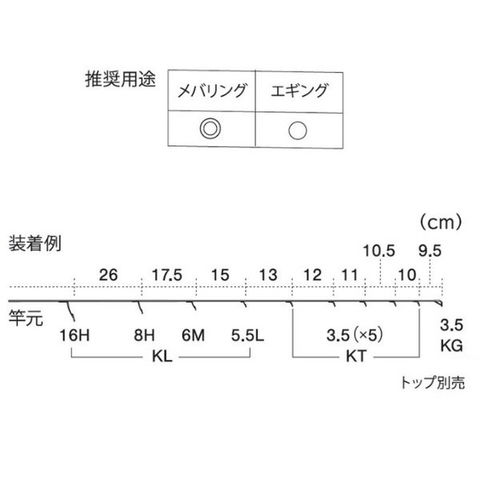 ガイド数:9個(トップガイド別売) 標準全長:6.5ft~9ft 推奨ライン:3lb~5lb(PE MAX0.8号) ※標準全長より長いブランクスの場合は、推奨ガイドをティップ部分に追加してください。