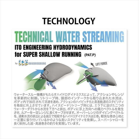 今江克隆と伊東由樹による知見の融合が導く究極解、I×I(アイバイアイ)ブランドが送り出す第三の刺客が、I×I【BLOWLY】です。ブローリーは、フューリアスで確立した伊東のハイドロダイナミクス(PAT.P)を導入。ファットボディがスーパーシャローを驚異的な振動ピッチで攪拌します。それは、リトリーブコース付近に生息するあらゆるタイプのバスを強制的に奮い立たせるような、「ソニックブーム(衝撃波)発生装置」ともいうべきレベルのもの。あらゆるリトリーブ速度域において、往年のバルサ製クランクを凌駕するアクションピッチを生み出すI×I【BLOWLY】は、「全面投影面積を拡大させる特異なボディフォーマット」×「稀代のウォータースルー構造」による、2つの機能的エレメントの融合が織りなす殊勝なクランキング・パフォーマンスを発揮。全長:49mm