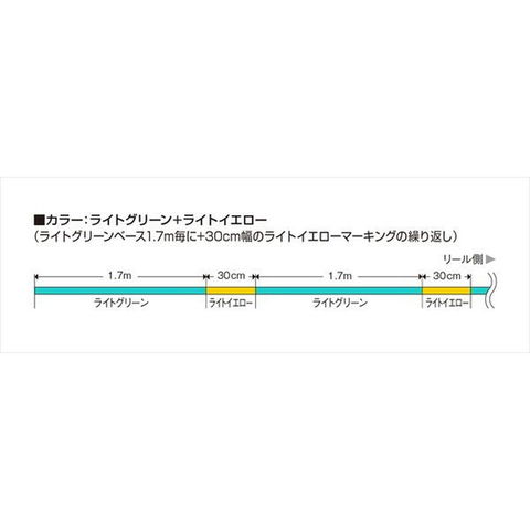 渓流ベイトフィネスフリークに向けた専用設計PE渓流ベイトフィネスでの魅力のひとつ、針の穴を通すような正確なキャスト。その際に重要な要素のひとつ、ブレーキング(サミング)。X8では難しいブレーキングも【X4】を採用することで思いのままに。【X4】採用でライントラブルを減少コシが強いX4は、ベイトキャスティングリールではつきもののライントラブルを減少させると同時に、トラブルが発生した時の復帰もしやすい。高い視認性をもつラインカラー<50m中間マーキング入り>ルアーの軌道を容易に把握できるライトグリーンとライトイエローを採用。カラー:ライトグリーン+ライトイエロー(ライトグリーンベース1.7m毎に+30cm幅のライトイエローマーキングの繰り返し)