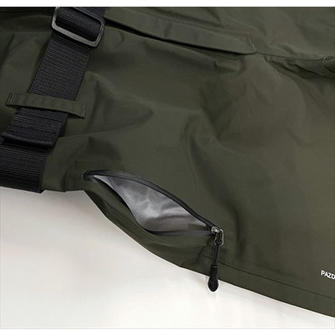 チェストハイ仕様で使い勝手の良いレインパンツ!!耐水圧・耐久性に優れる3レイヤー仕様のレインパンツです。膝部分の立体3Dカットなど各所に立体裁断を採用し、釣行時の動きを妨げません。チェストハイ仕様なので屈んだ状態での背中側からの衣服内への浸水、寒冷期には冷たい風の侵入を防ぎます。また、ジャケットを脱いだ状態での着用時も胸辺りまでの飛沫や汚れを防いでくれるのでオフショア釣行や船での餌釣りでも安心です。ポケット部分はスルーポケット仕様で、インナー・ミドラーのパンツのポケットにエントリーできるようになっています。