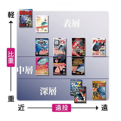 視認性を持たせ、遊離アミノ酸の旨味成分がグレの味覚と臭覚を刺激。マキエのゾーンに誘い込む。グレの誘引材として、沖あみミール・黒海苔・海藻微粉末などをバランス良く配合しています。 ★ 内容量:約 1.7kg(最大 5.4kgに増量)
