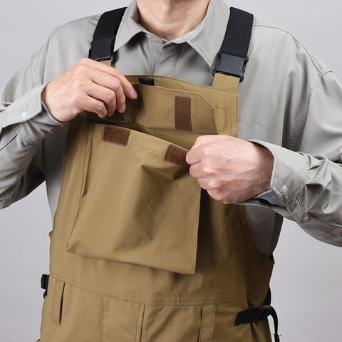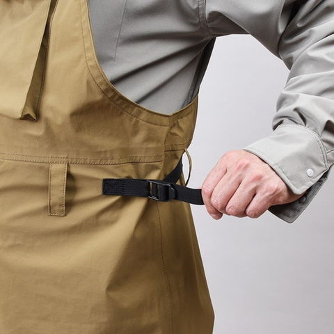 透湿防水オーバーオールSCレインジャケットとのセットアップを考慮した透湿防水オーバーオール。ジャケットフロント部からの浸水を防ぐサロペットタイプ。本体軽量ナイロン3レイヤー素材(aquamaxSUPREME透湿防水加工)。気温、湿度が高くなる時期や長距離移動時にもレイン内部の快適性を保つ透湿素材を使用。ショアアングラーの運動性を考慮した軽量モデル着用時にウエストサイズ調整が可能な左右アジャスター付きベルト。フラップ式ポケットは収納力を考慮したマチ付き仕様。サイズ:2XL(股上68cm、股下79cm、ウエスト126cm、ヒップ134cm、対応身長180-185cm)