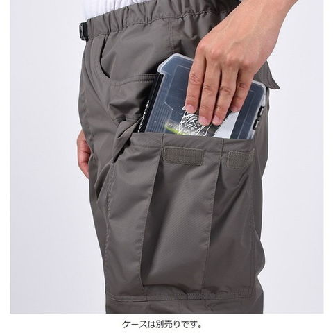 耐久性と運動性を追求した防水防寒パンツ。ショアフィッシング時に求められる耐久性と運動性を追求。表生地は強度、耐久性に優れるナイロン素材。ウェアー内部の湿度を適度に排出するウィンターウェアー専用『aquamax POLAR+』透湿防水加工。運動性を最優先したインナーコットンレス仕様。インナーには保温力の高いマイクロフリースを採用。片手でウエストサイズ調整が可能な中通し式ウエストベルト。サイズ:L(股上30cm、股下72cm、ウェスト82-104cm、ヒップ118cm、対応身長170-175cm)