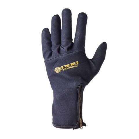 厳しい環境下でも着脱が容易に行えるファスナーを採用。親指と人差し指は擦り切れを軽減する合成皮革を使用したフルグローブ。通常のクロロプレンに比べ約40%保温力アップ。チタン合金の超極薄フィルムをサンド、トリプル構造。手首は長めの設計で保温力抜群。掌、手の甲側は共にタイタニュームα加工生地を採用。メイドインジャパン。サイズ:LL
