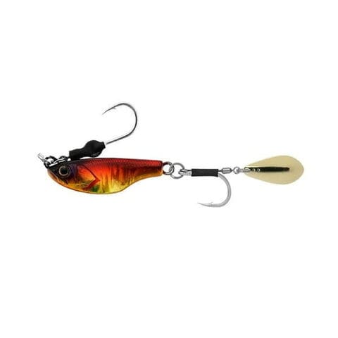 前方腹側に重心を持たせたボディ形状は、スイミング姿勢を安定させ、抜群の飛距離と直進性能を発揮します。また、小型ブレードは空気抵抗が少ないため、通常のジグに引けを取らない射程範囲を誇ります。