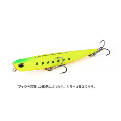 トップウォータープラグでは成り立たない、トップ&サブサーフェイスゲームを制す。マニックフィッシュは、うわずったベイトフィッシュに着いたシーバスを狙い撃ちするために開発された、トップ&サブサーフェイス仕様のシンキングペンシルである。サイズ感をカタクチイワシに合わせ、ウエイトはマニックムーヴが再現できる最大荷重。さらに立ち上がりのよさと浮き上がりアクションをプラスするという、リファインモデルの域を大幅に超える再設計を施した。能動的にクイックなパニックアクションを演出するための、特別仕様である。水絡みのよい高比重ボディは、トップウォータープラグにありがちな下からの食い上げによるミスバイトを抑制し、フッキング率を高める。また高速トゥイッチによる誘いにおいても、予測不能なパニックアクションを、誰もが演出することができる。シンキングだからこそ、成立するトップ&サブサーフェイスゲームがある。マニックフィッシュだから獲れるシーバスがいる事実だ。