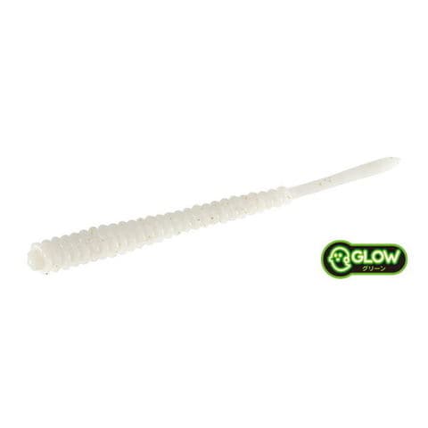 大型アジを狙う為に設計された3inワーム!斜めリブはジグヘッドの刺し方の違いによる使用法が可能。リブの形状は抵抗を受けたい前半は大きめ、深く吸い込ませたいボディ後半は小さめの設計。サイドからみると4:6のバランスでくびれを設置。この形状変化は、誘いのアクション後、アジが捕食し易い姿勢を取り、吸い込みの際フックのすぐ後ろまで折れ曲がる様になっている。さらに、テールの先端部にのみボリュームを持たせ、フォール・リフト中にテール先端部だけがプルプルと動きバイトに持ち込みます。またフックを刺す位置にはワームの裂け・ズレを軽減するリブも設置。従来のテトラワークス製品と同じマテリアルでありながらボディコア部のみ硬め。ロングワームで起き易いワームの絡みつきを抑える為と、アクション後の姿勢をよくする為である。