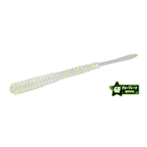 大型アジを狙う為に設計された3inワーム!斜めリブはジグヘッドの刺し方の違いによる使用法が可能。リブの形状は抵抗を受けたい前半は大きめ、深く吸い込ませたいボディ後半は小さめの設計。サイドからみると4:6のバランスでくびれを設置。この形状変化は、誘いのアクション後、アジが捕食し易い姿勢を取り、吸い込みの際フックのすぐ後ろまで折れ曲がる様になっている。さらに、テールの先端部にのみボリュームを持たせ、フォール・リフト中にテール先端部だけがプルプルと動きバイトに持ち込みます。またフックを刺す位置にはワームの裂け・ズレを軽減するリブも設置。従来のテトラワークス製品と同じマテリアルでありながらボディコア部のみ硬め。ロングワームで起き易いワームの絡みつきを抑える為と、アクション後の姿勢をよくする為である。