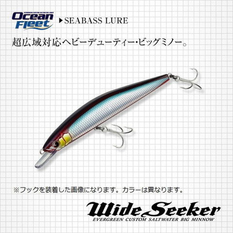 ランカーシーバス専用オールラウンドビッグミノー・ストリームシーカー派生形。さらなる飛距離でより広範囲のサーチに対応&高強度化でランカーシーバスに加え青物等大型魚種全般を本気で狙う用途に対応可能となった、超広域対応ヘビーデューティー・ビッグミノー、ワイドシーカー。アクションの性質や潜行レンジはストリームシーカーを基準にアレンジ。まず泳ぎはストリームシーカーがウォブル5:ロール5のベーシックなウォブンロールなのに対し、ワイドシーカーはウォブル3:ロール7とロールの割合を高くすることでリップに受けた水流の抵抗がスムーズに抜ける方向性に調整、そして潜行レンジはストリームシーカーよりもやや深く。その狙いは、超高速な流速域でのコントロール性のさらなる向上。例えば大河川河口部下げ潮時の激流ダウンドリフトや、外洋に面した荒磯でのサラシ撃ちなど、ルアーが過酷な水流抵抗に晒されるラフなシチュエーションでも不要に暴れず、浮き上がらず、狙いのコース・レンジをよりストレスなくトレースできるセッティングにこだわりました。