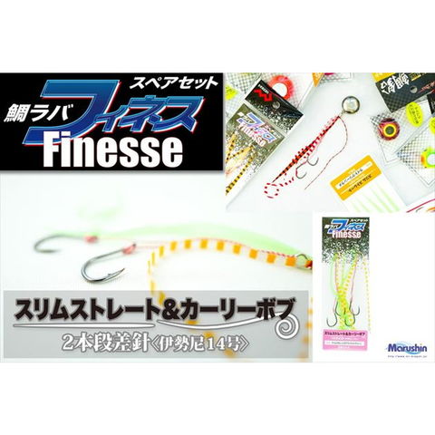 マルシン漁具 鯛ラバスペアセット フィネス スリムストレート&カーリーボブ グリーン×チャート