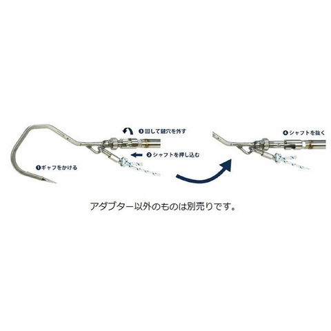 ギャフとシャフを状況に合わせて固定したり、 外してフライングギャフとして使用出来るアダブター。 ロック&ロック解除はワンアクションで行えます。 ロックショアからボートフィッシングまで対応可能。