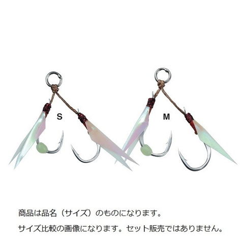 イサキ・ハタ類・小型回遊魚などを対象にしたスーパーライトジギング専用アシストフック。実績のある厳選した素材を使用し、鈎はフラッシング効果抜群の胴打ち鈎仕様。ソフトビーズがバイトマーカーとなりターゲットに鈎を確実に喰わせることが可能です。