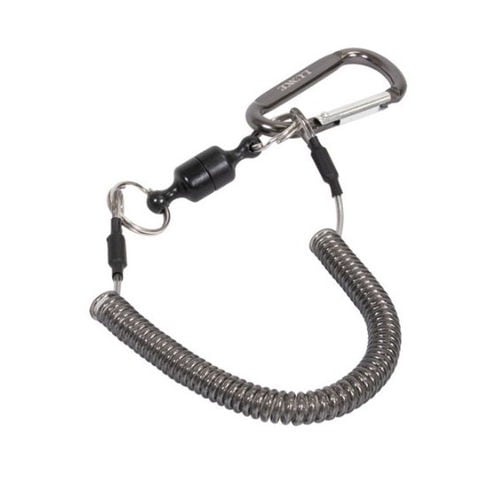 プライヤーとフィッシュグリップなどの小物を提げる便利なアイテム ●垂直耐荷重1kgのネオジウム磁石材質、ワンタッチ脱着リリーサー、高強度ステンレスワイヤー内蔵で強度アップ。