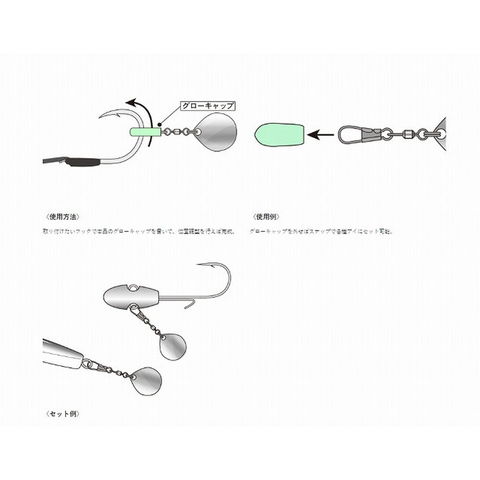 フックでグローキャップを貫けば簡単にセット完了!グローキャップを外せばスナップでルアーのアイに簡単セット!