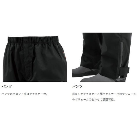 スタンダードレインスーツ。耐水圧10000mm、透湿10000g/m2・24hのG-SPEC素材を使用したスタンダードなレインスーツ。●フードはドローコードを採用することで、キャップをかぶった状態でも頭部にジャストフィットできます。●ジャケットには大型ポケットを採用。●袖口はきっちりフィットできるゴムシャーリング+面ファスナー仕様。サイズ:LL