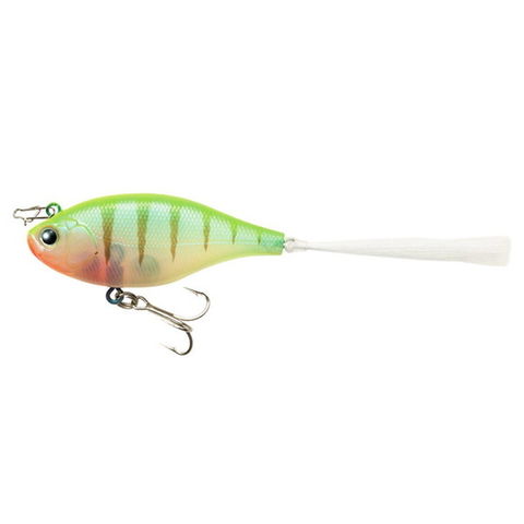 水面直下・水面の攻略法としてのI字系ルアーはとても効果的です。しかし、「見に来るが喰わない」そして「気がつかれない」ことが多いのもこの釣りの特徴。そこでトラファルガー5フラットは、喰わないバスに対しアングラー側から仕掛けられること、また存在感のあるアピール力を加えることのできるi字系を目指し開発を進めました。重要なのは、基本はI字状態でもシェイクしたときにはキレのあるアクションをすること。そのためアクション時のロールが強いルアーに仕上げています。バスが視覚に頼る、クリアウォーターでの使用が多いI字系。ローリングアクションによるフラッシングは、水の透明度が高ければ高いほど効果を発揮し、バスにアピール。たとえ無風状態でもスイッチを入れる力を発揮します。またテール部分に取り付けられた「TMCモルフォファイバー」は世界一美しい蝶、モルフォ蝶の発色原理を応用して作られた特殊繊維。屈折率の違う成分が幾十にも織り成して形成されているこの繊維は、光が当たると淡い自然な輝きを放ち、バスに最後まで見切られることなくバイトに持ち込みます。