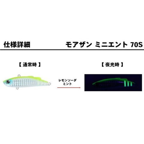全長:70mm 重量:20g アクション:タイトバイブレーション&3Dダート バイブレーションの3Dダートメソッドを生んだ「ミニエント」に射程距離、アピール力、河川での対応力を上げた70mmサイズが遂に登場 ●ミニエント57Sの基本性能そのままにサイズ&ウエイトアップ。1つのルアーで攻め方を瞬時に変えられる一石二鳥のバイブレーション ●上下・左右の起動で誘う3Dダートメソッド対応 ●遠投性と素早いアクションレスポンス、スローリトリーブ対応 ●ただ引きではタイトバイブレーション、フォールでも誘える ●ミニエント57Sでは攻めきれない水深、流れ、強風時、足場の高いエリア向けに※掲載している商品の画像は代表画像を表示しています。また実物と色が違って見える場合があります。あらかじめご了承下さい。