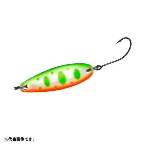 7g、フックサイズ:#6シングル 速い流れの中でしっかり底を取ることが出る。着底後、巻き始めても浮き上がり過ぎず、しっかりと流れの中を泳がせることが可能。特に流れの速い中規模河川での出番が多くなるスプーン。止水での使用ももちろん可能で、大きなウォブルアクションをし、足元までしっかりと引くことが出来る。