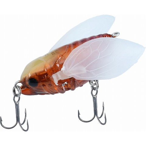 サイズ:41mm 標準自重:4.6g 標準装備フック:サクサス加工トレブル#10 カラー:クリアブラウン ★ 弱って水に落ちたセミの羽根は閉じた姿勢でいることに注目。羽根にバネ機構をもたせることでアクション後も閉じた姿勢をキープ。キャスト時に羽根が開きにくく、安定した飛行姿勢でよく飛ぶ。リトリーブ時は羽根が開いてパタパタアクション、フッキングを向上させる2フック仕様。脅威の貫通力を持つサクサスフックの色はセミの足のようにも見え、ナチュラルさを演出。また、横風を受けても流され難いような浮力に調整。シルエット、パーツ、アクションを進化させたセミルアーが誕生。※掲載している商品の画像は代表画像を表示しています。また実物と色が違って見える場合があります。あらかじめご了承下さい。