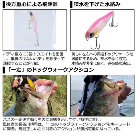 乱れることの無い高速ドッグウォーク!「一定」というキーワードがもたらす新提案ペンシルベイト。■小さなボディに狙った色感を出すのは非常に難しく、何度も何度も修正を行って完成した長谷川耕司のこだわりカラー ■チャート系は琵琶湖北湖で非常に実績の高いカラーです。※掲載している商品の画像は代表画像を表示しています。また実物と色が違って見える場合があります。あらかじめご了承下さい。