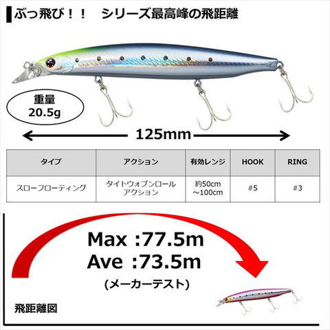 新たなる飛びの伝説を引き継いだSLZバーティスがフルモデルチェンジ!「R」の名を冠してさらなる昇華へ! ★ カラー:アデルヒラメピンクイワシ タイプ:フローティング サイズ(mm):125 標準自重(g):20.5 標準装備フック:#5トレブル ※実物と色が違って見える場合があります。あらかじめご了承下さい。
