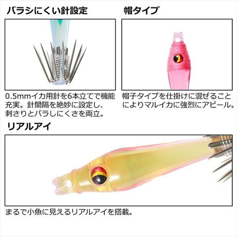マルイカ釣の定番ミッドスッテ33Sミラーに混色タイプ追加。水中でキラメキ効果が強く出るミラーにさらにアピール力を強めた2色成形タイプが登場。スレたマルイカに効果を発揮 ★ 針サイズ:0.5mm 6本立て 入数:1 ※実物と色が違って見える場合があります。あらかじめご了承下さい。