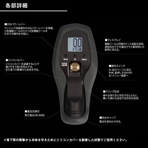 自重:175g ICカウンターメニュー:リール接続、アラーム音、バックライト、言語選択、認証 付属品:シリコンカバー、マニュアル(電源の単三アルカリ電池2本は別売り) 対応機種:SEABORG G1800M-RJ、SEABORG G800MJ