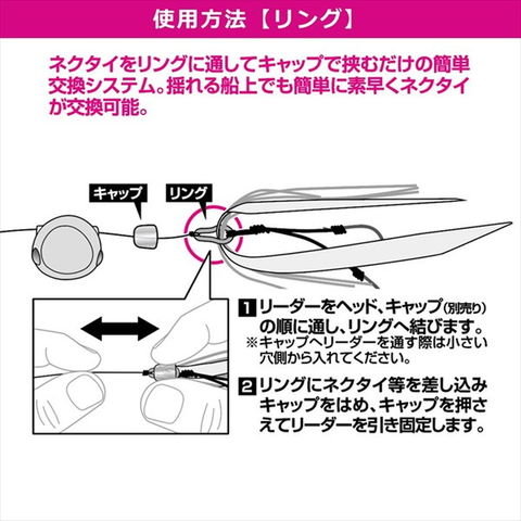 簡単・迅速!リーダーを切らずにフック・ネクタイが交換できる紅牙の新接続パーツ「βシステム」。独自形状の金属リングにネクタイを通して、キャップで留めるだけの簡単システム。リーダーを切らず簡単にフック・ネクタイが交換でき、大幅に快適性が向上。強度面も向上したことで、大鯛の強烈な引きにも安心対応。 ★ タイプ:リング 入数:5 ※実物と色が違って見える場合があります。あらかじめご了承下さい。