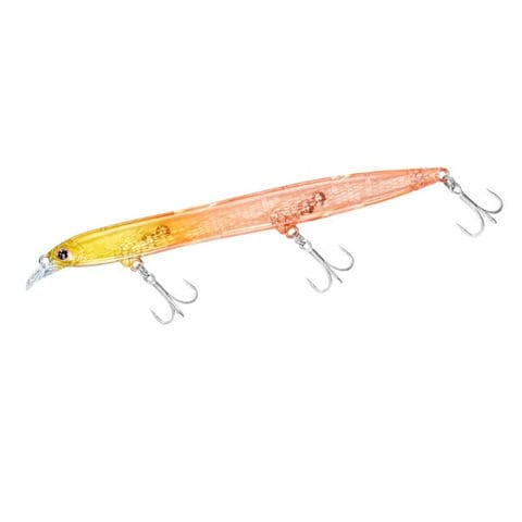 小沼正弥監修。密かに爆れ。バチ、サヨリ、シラス、激スレパターン対応、極細シルエットの水面直下攻略型ぶっ飛びシャローランナー。細身・小型ベイトに偏食している時、激スレ時に最適。バチ、サヨリ、シラスはもとより、イワシや稚アユ等の小型ベイトパターンにベストマッチな極スリムシルエット。高レスポンス&スレに強いタイトウォブンロール+テールスライドアクションで、低速から高速まで全てのリトリーブに対応。ロッドポジションとリトリーブ速度の組み合わせで水面直下から約30cmが有効レンジ。風雨等でI字系スリムプラグが太刀打ちできない状況でも、一枚下のレンジでしっかりアピールできる。極細ボディながら磁着重心移動を前後にダブルで搭載し、「スリムミノーは飛ばない」イメージをくつがえす快適なキャスタビリティと立ち上がり性能を両立。全長:120mm