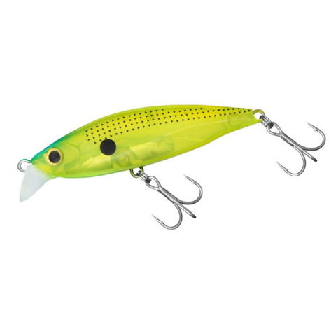 干潟等シャローのデイゲームに最適。リトリーブ速度で変わる可変アクション&高比重コンパクトシンキングミノー。スローではシンキングペンシルのようなスイングアクション、ファストではバイブレーション的なハイピッチタイトウオブンロールアクション。バイブレーションでは攻略が難しい流れの中でもレンジキープさせ易い。明滅効果の高いハーフスケール&セミフラットサイドボディ仕様。千葉の「シャローマスター」山内モニター監修モデル。全長:65mm