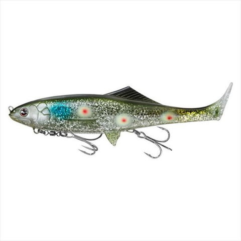 小沼正弥フィールドテスター監修。水面直下を制するフローティングスイムベイト!セイルアッパーはソフトエラストマー素材を採用しており、ハードルアーを見切ってしまうスレたシーバスでも反応させることができるフローティングスイムベイト。ソフト素材と逆付けテールはデッドスローリトリーブでもテールを振り子のようにしっかりと左右に振り、高い集魚効果を誇る。着水音に関してもハードルアーに比べナチュラルで、まるで魚がはねたような音であることからキャストを重ねてもスレにくいのが特徴。特に落ち鮎やコノシロなどのベイトについた大型シーバスを狙う際、ハードルアーとは違う引き出しとして是非ご使用いただきたい。 ★ 全長:165mm