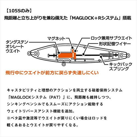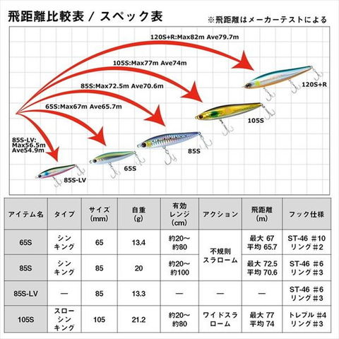 小沼正弥監修モデル。デイ&ナイト、いつでもどこでもピンチな時にもスイッチヒッター。河川やサーフ・磯・干潟などのシャローエリアや水面直下を簡単に攻略できるデイ&ナイト対応シンキング&スイミングペンシル。ジグ並みに飛距離が出るので、ミノーでは届かない遠くのボイルも射程範囲に収める。コノシロ・落ち鮎・イワシ・イナッコ・ハタハタ等様々なパターンに対応。アクションは流れに敏感かつ不規則なスラロームアクション。操作方法は、昼夜に関係なくスローリトリーブのタダ巻きのみ。プレッシャーが高い激戦区のフィールドで使用する時は、ダウンクロスではなくアップストリームキャストをオススメします。流されてくる小魚がシーバスの斜め前に現れるようなイメージでトレースさせるのがコツ。サーフ・磯・漁港・湾奥・都市型河川・河口・干潟・ボイル打ち・そしてピンチな時など、様々なフィールドでお試しいただきたい。 ★ 全長:65mm
